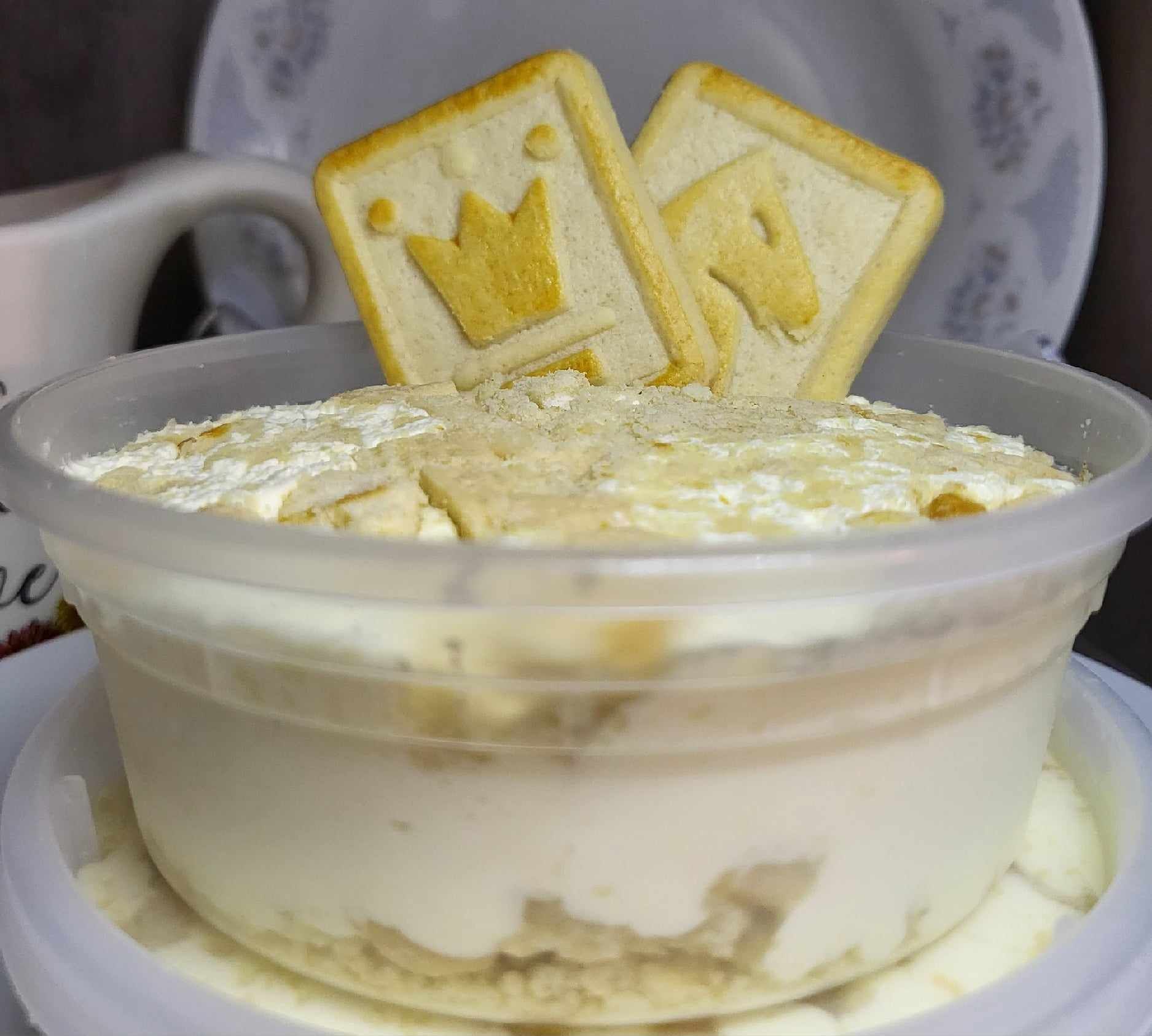 A creamy airy vanilla mousse chilled in between shortbread cookies